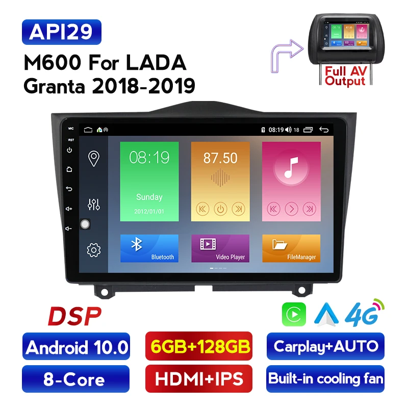 Автомобильный радиоприемник для LADA ВАЗ Granta Cross 128 10,0, Восьмиядерный, 6 ГБ ОЗУ, 2018 Гб ПЗУ, Android 2019, GPS, Wi-Fi, 4G, LTE, 5 ГГц, Wi-Fi