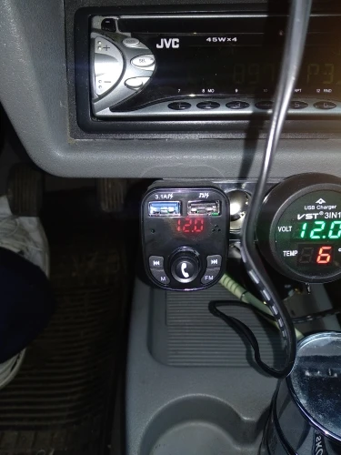 Показывает напряжение, частоту и режим. Уверенно конектится к телефону. Только громкость надо ставить на максимум на модуляторе и телефоне. И дисплей красного цвета