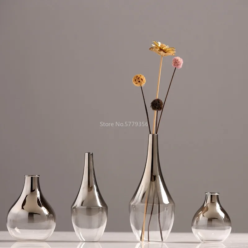 Креативный домашний декор, Скандинавская Цветочная стеклянная ваза, креативная Серебряная градиентная сушеная вставка, настольное украшение украшения для террариума