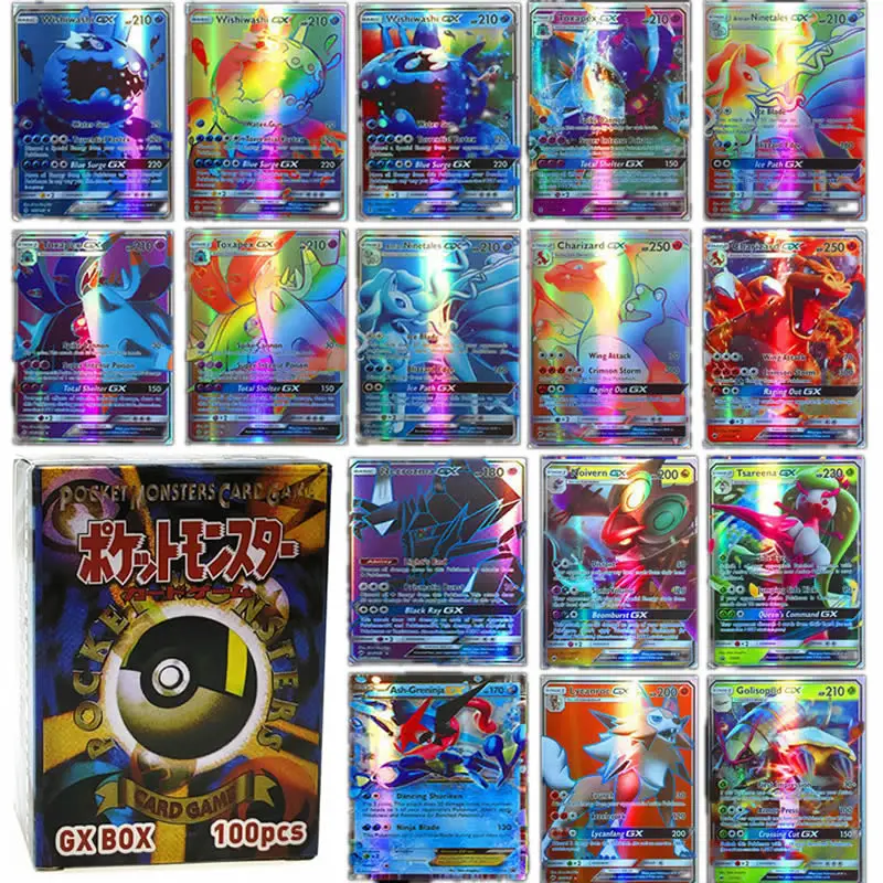 100 шт. блестящие карты Покемон Мега GX каартин коробка для детей игра Такара Томи Покемон Боевая торговая карточка Забавная детская игрушка подарок