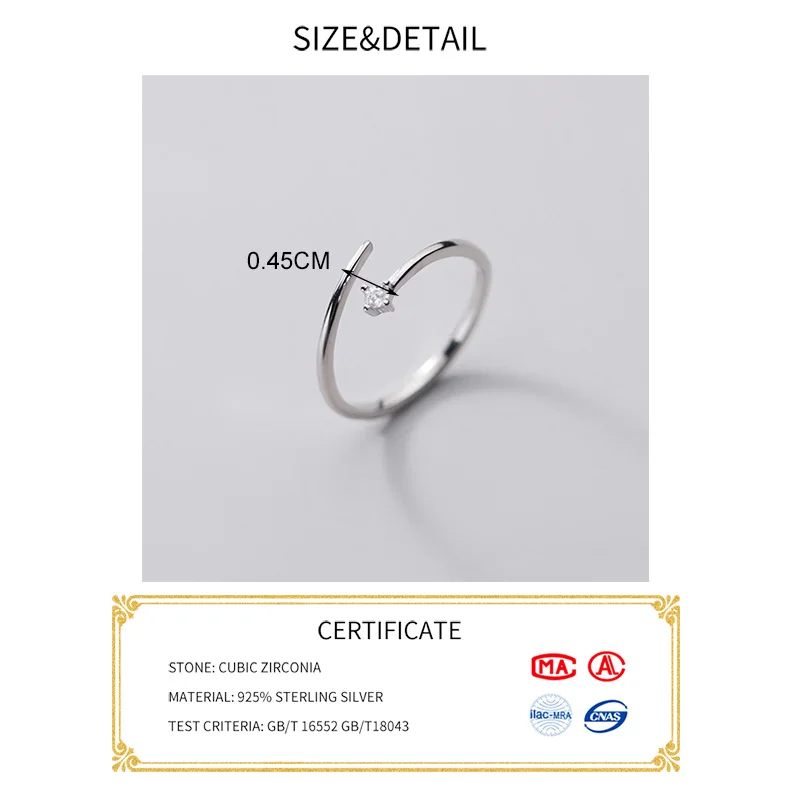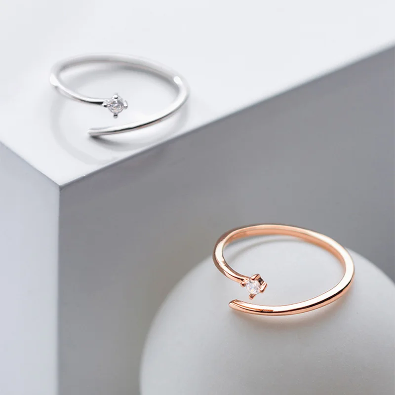 INZATT реальные 925 Стерлинговое Серебро Циркон линии регулируемое кольцо для Модные женские вечерние минималистский ювелирные изделия аксессуары в стиле хип-хоп