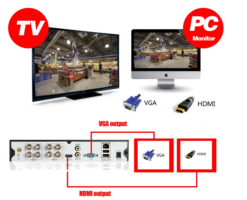 AHD DVR FeaturesHDMI&VGA output / Motion detection/email Alert,Onvif