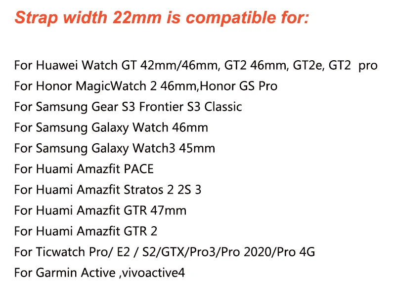 Applicationfor Huami Garmin Samsung Huawei Ticwatch 22mm 20mm