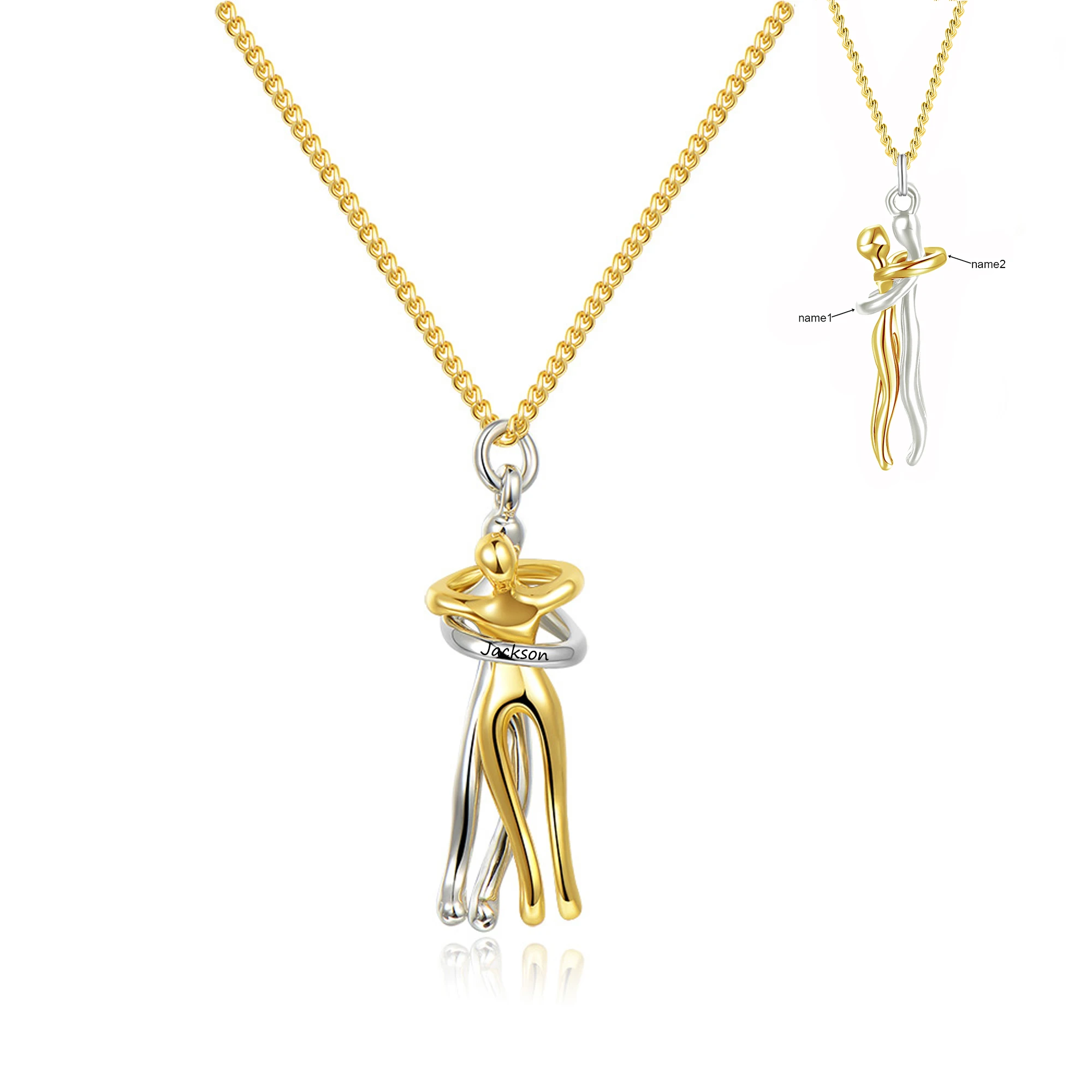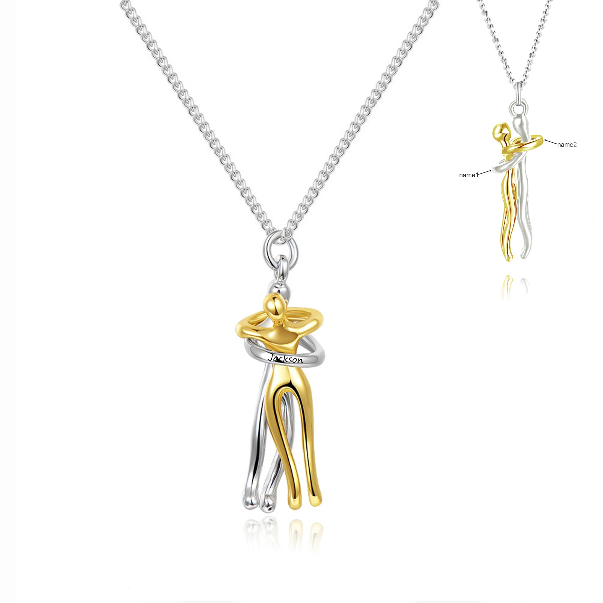 Индивидуальное ожерелье с кулоном в виде пары с именем на заказ, ожерелье с кулоном, цепочка из ключиц, изысканный чокер с обнимающимися звеньями любви, ювелирное изделие в подарок