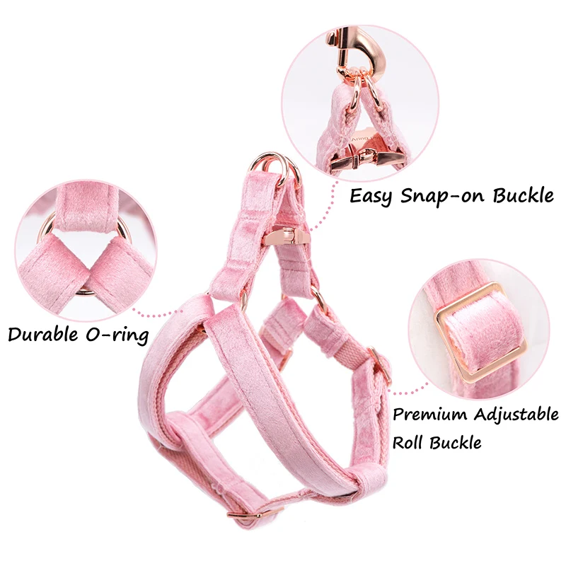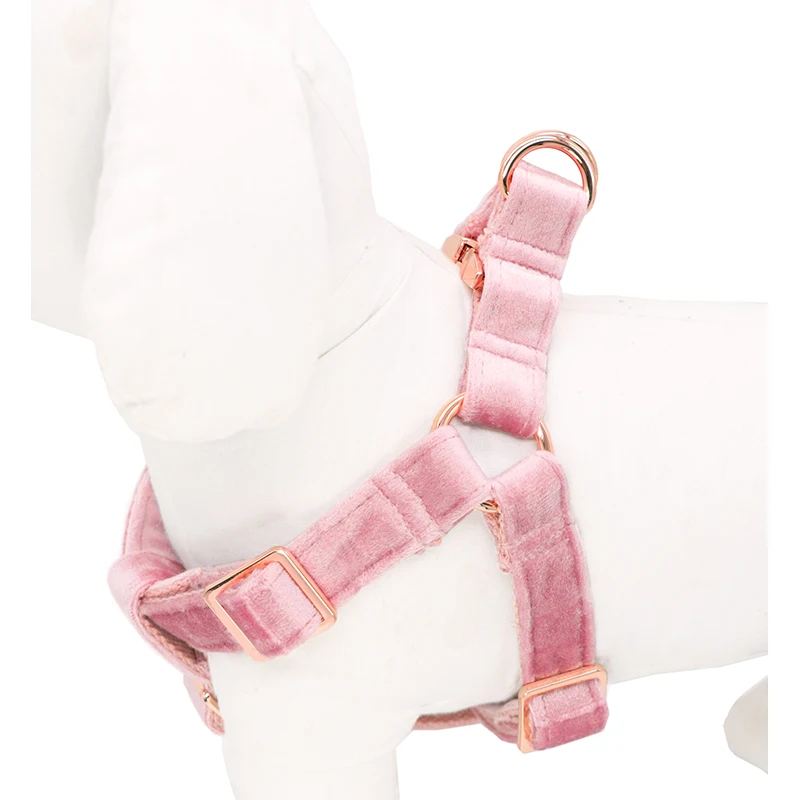Бархатная шлейка для собак, базовый хлопковый поводок розового цвета с регулируемой пряжкой для собак и кошек