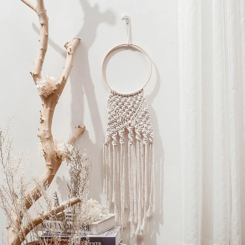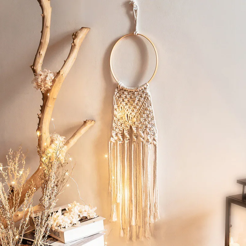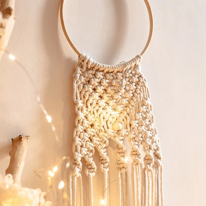 Макраме, кисточка, Ловец снов, хлопковая плетеная настенная подвеска ручной работы, Декор для дома, свадьбы, вечеринки, поделки с лампой лунойзвездой