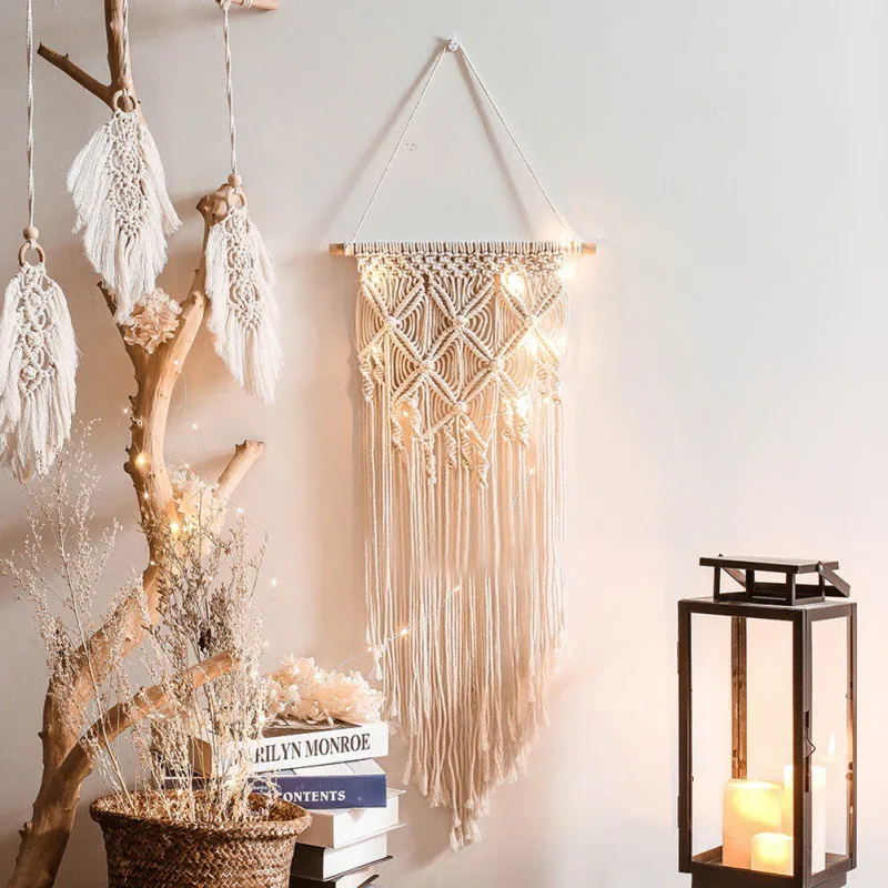 Ручной настенный гобелен макраме, подвесной светодиодный светильник...