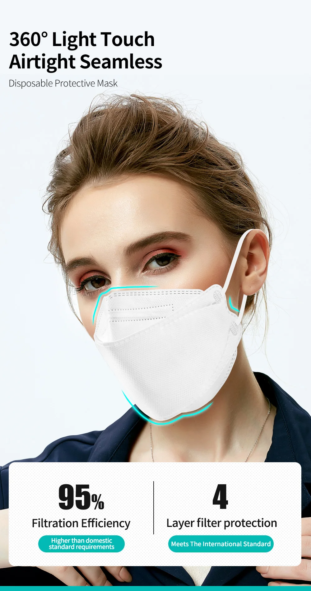 Преимущества масок для рыб:①Comfortable в носке.②Хороший эффект фильтрации, особенно для очень мелких частиц и пыли.③ Подходит для различных форм лица.④ Высококачественный защитный эффект. Его защитный эффект такой же, как маска KN95, маска N95 и Европейская маска FFP2.