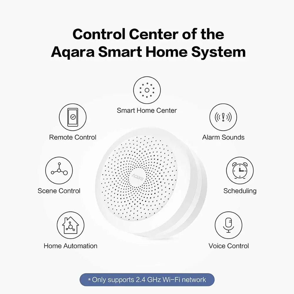 Блок управления умным домом Aqara ZigBee Gateway, беспроводной хаб с поддержкой Wi-Fi, RGB подсветкой, работает с приложением Apple Homekit