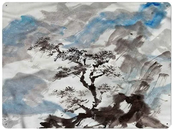 Оловянные знаки в японском стиле, сосновые деревья на горах, винтажная тарелка, настенный Декор для дома и гаража, украшение для стен