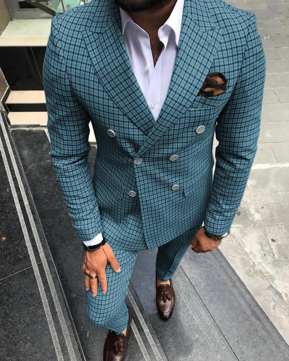 Мужской двубортный блейзер в клетку, смокинг мятно-зеленого цвета, ...