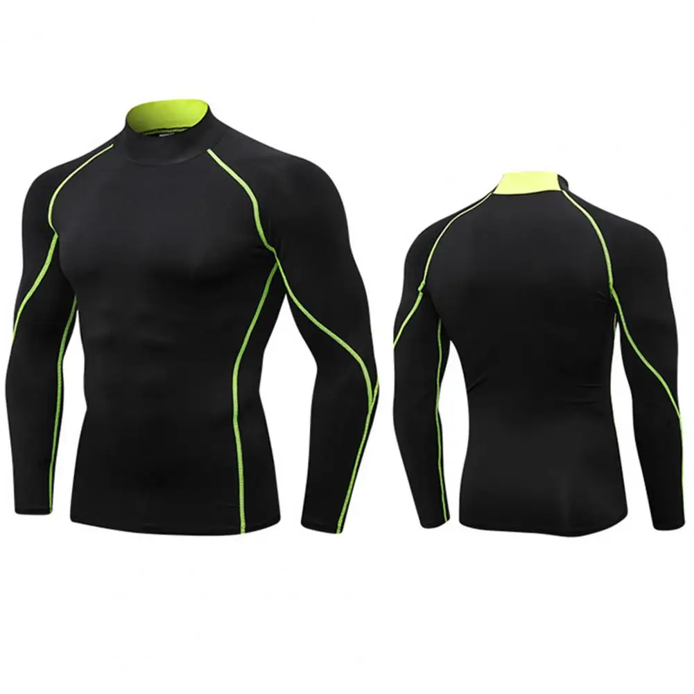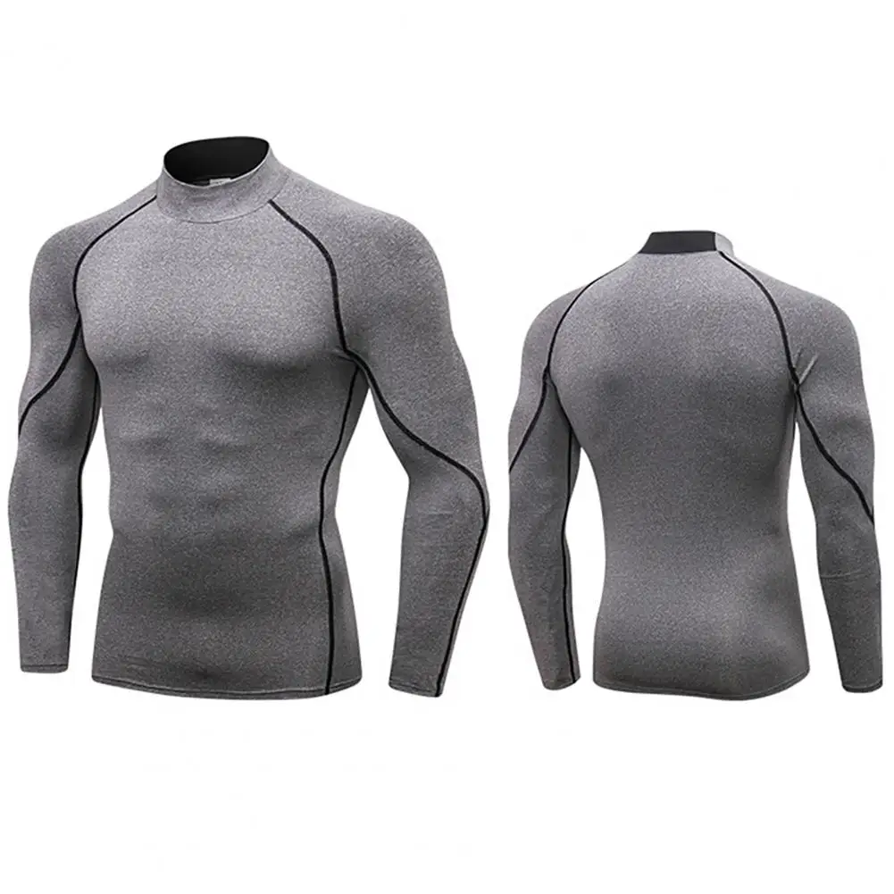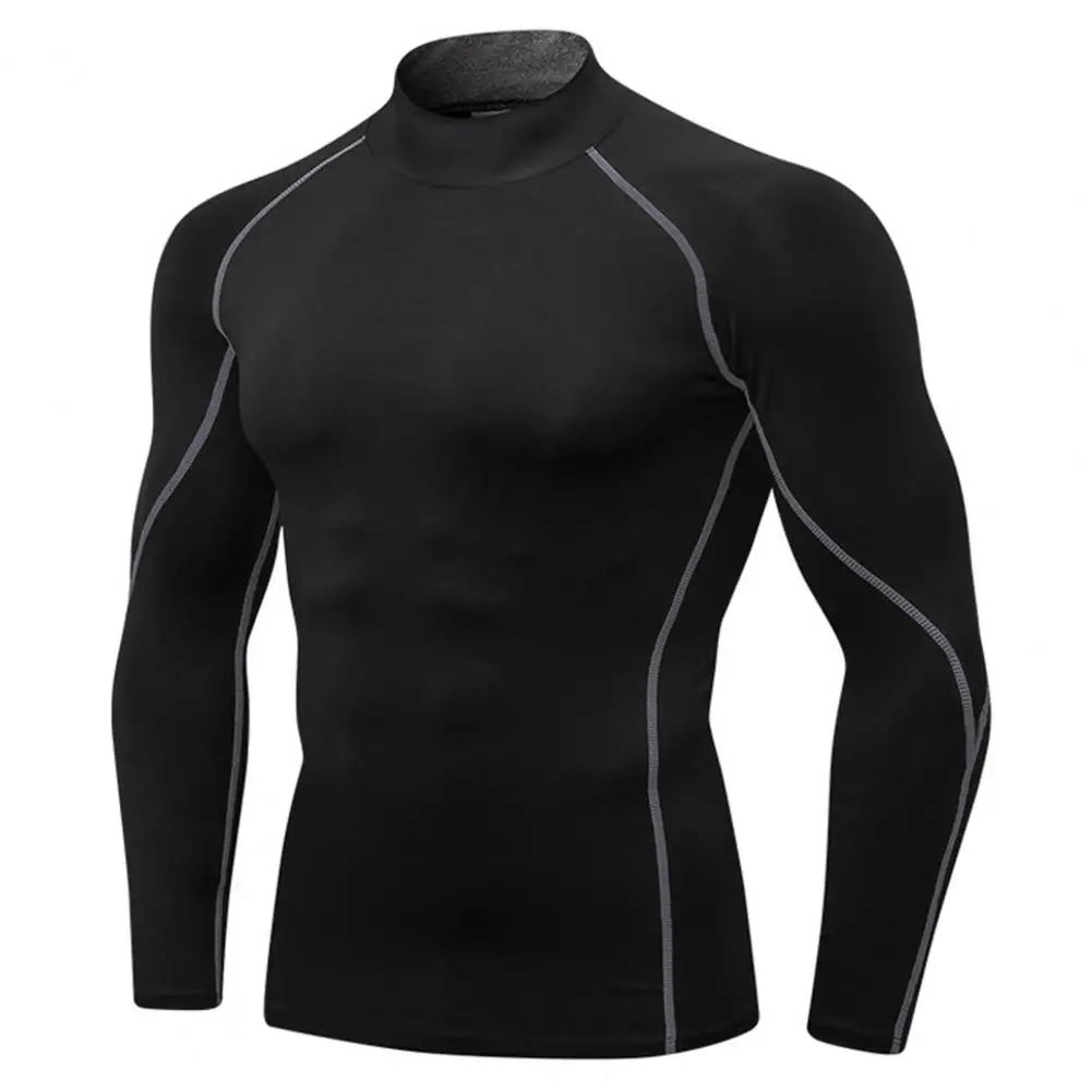 Мужская Осенняя Спортивная футболка с длинным рукавом и высоким воротником, термобелье, облегающий Топ, уличная одежда