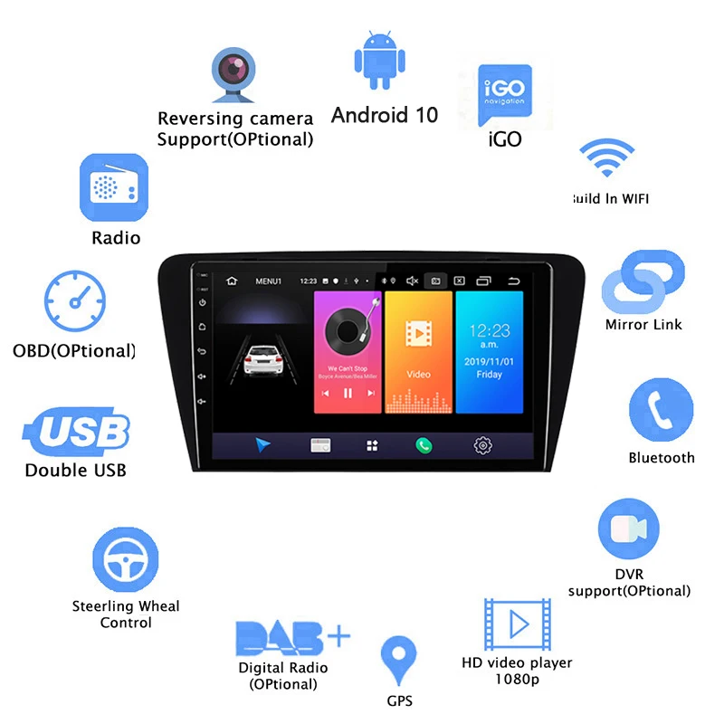 Автомагнитола JOYINCAR, 2 + 32 ГБ, Android 10,0, мультимедийный видеоплеер, GPS-навигация для SKODA Octavia 2013-2018 A7, 2 din