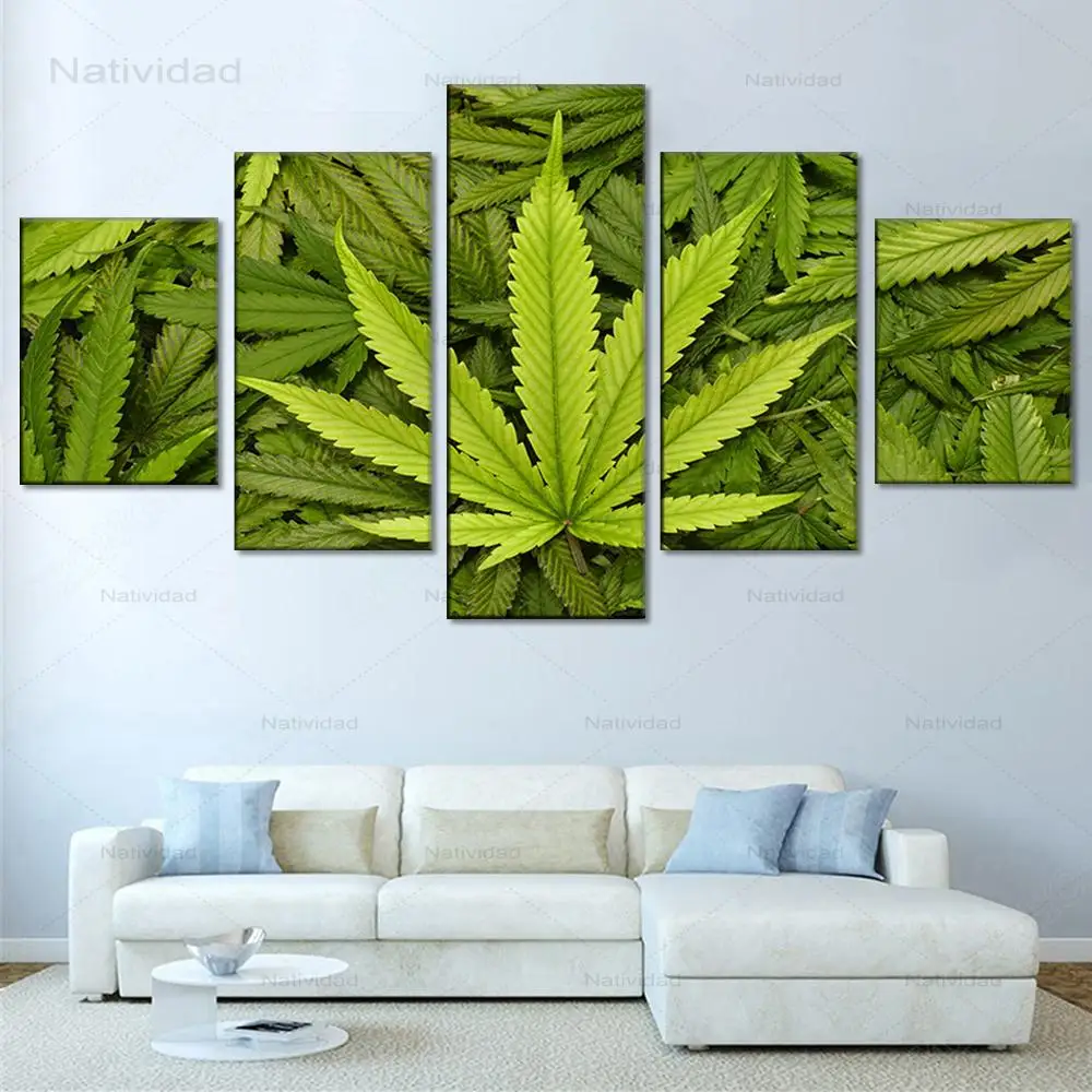 Картины модульные на холсте, с зелеными листьями, травами, для гостиной, дома, 5 шт., постеры для украшения дома