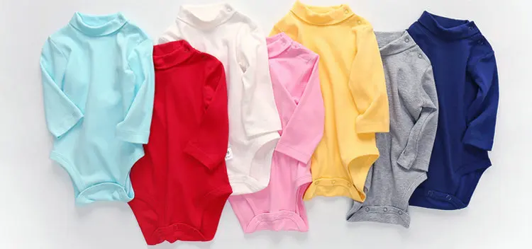 Однотонные хлопковые комбинезоны для детей с высоким, плотно облегающим шею воротником Одежда для новорожденных малышей с длинными рукавами для маленьких девочек одежда для детей детские пижамы нижнее бельё для девочек Ropa Bebe