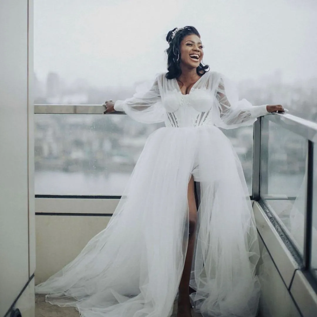 Красивые белые иллюзионные тюлевые Свадебные платья с Разрезом Платье для дня рождения с длинными рукавами ТРАПЕЦИЕВИДНОЕ длинное Тюлевое платье для беременных