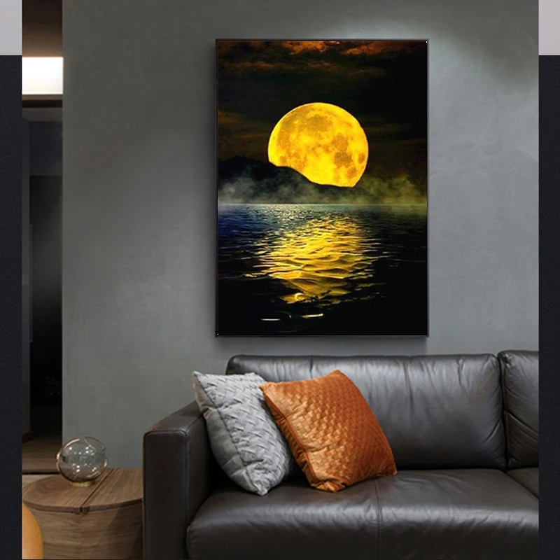 Желтая Красная Луна на море, холст, живопись, абстрактные современные принты и постеры, настенные художественные картины для гостиной, украшение для дома