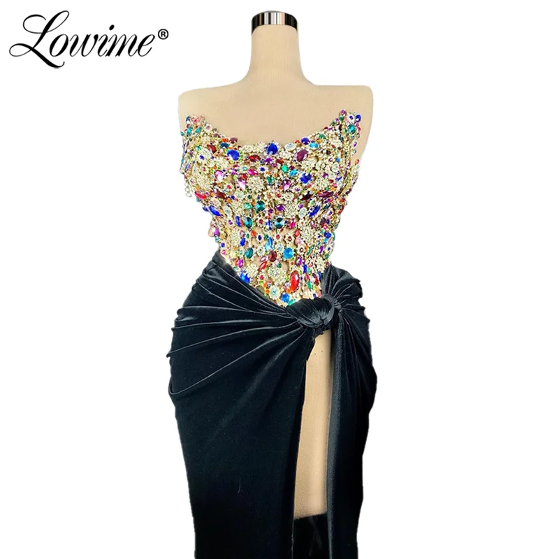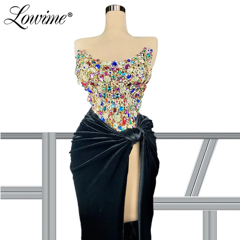 Женское вечернее платье, черное, с кристаллами, украшенное бисером, 2021