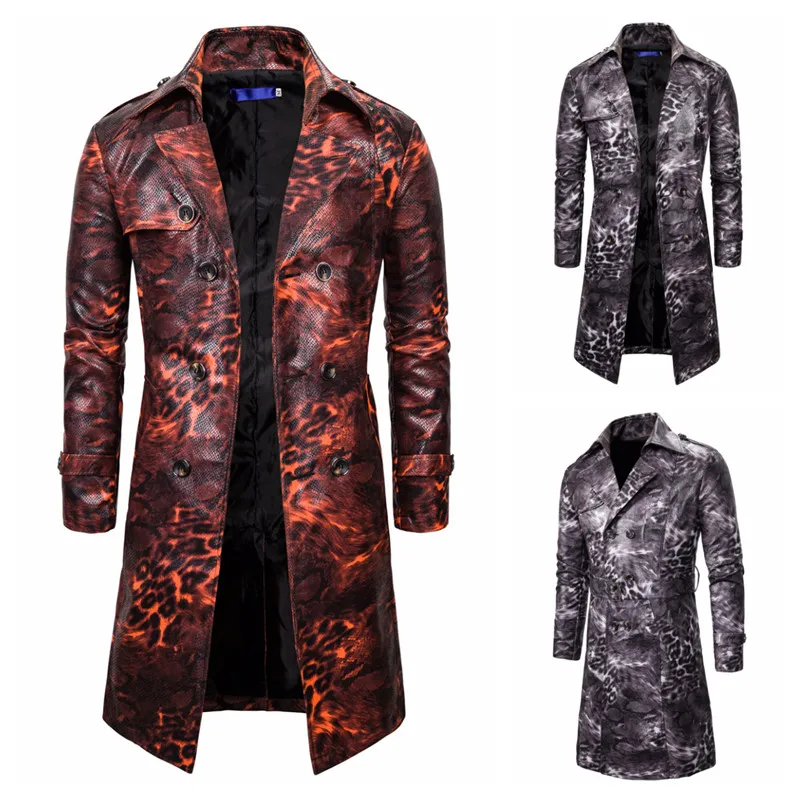 Тренч длинный мужской, повседневный двубортный приталенный пиджак с леопардовым принтом
