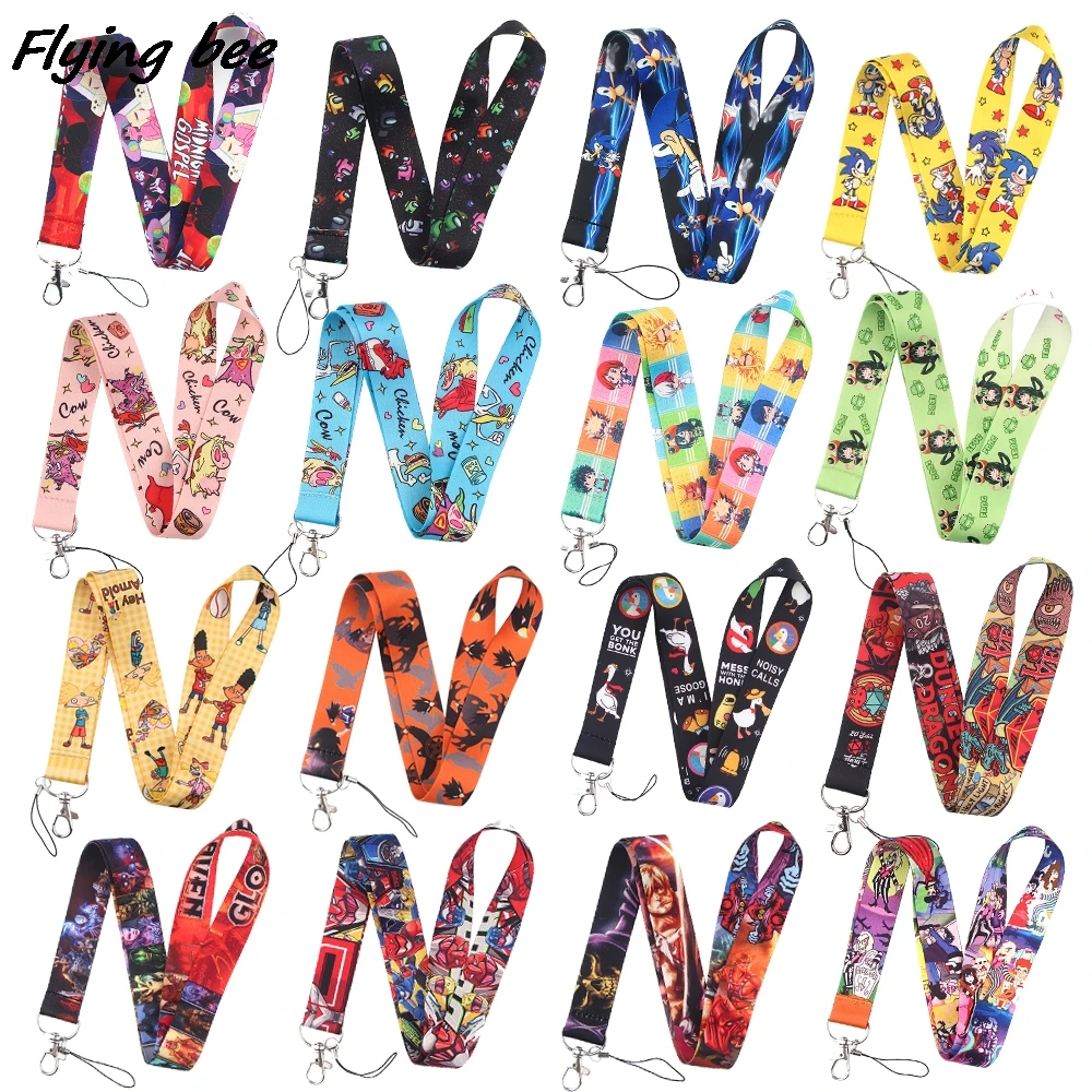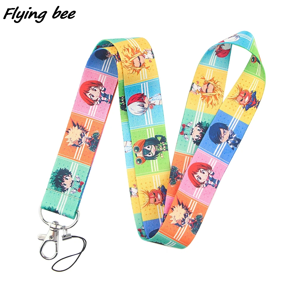 Flyingbee аниме Рисунок из мультфильма; Креативное шнур значок ID-карабином новые стильные тесёмки оптом мобильный телефон веревка шнурки шейные платки аксессуары X1369