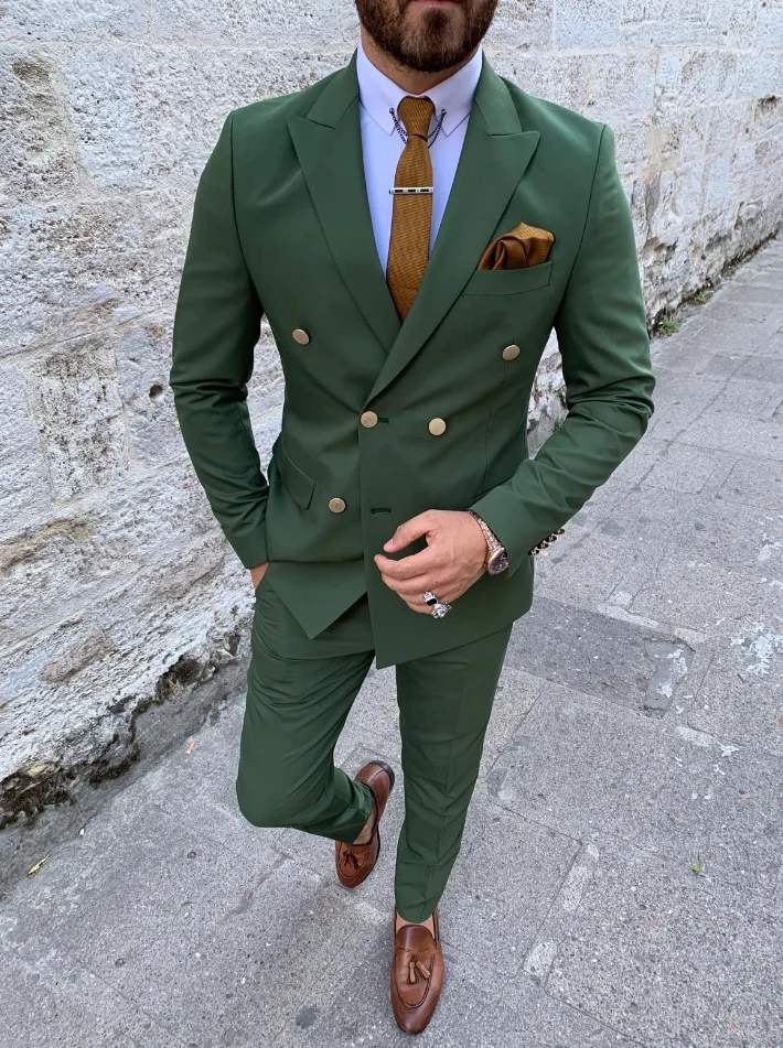 Новый модный зеленый мужской костюм, костюмы с лацканами для мужчин...