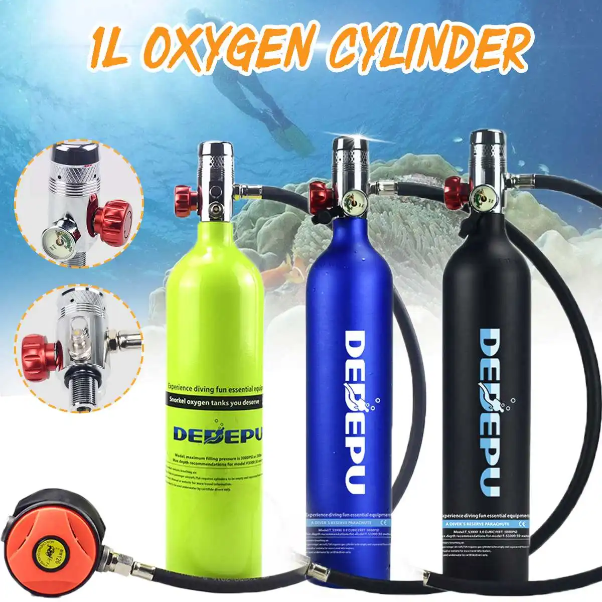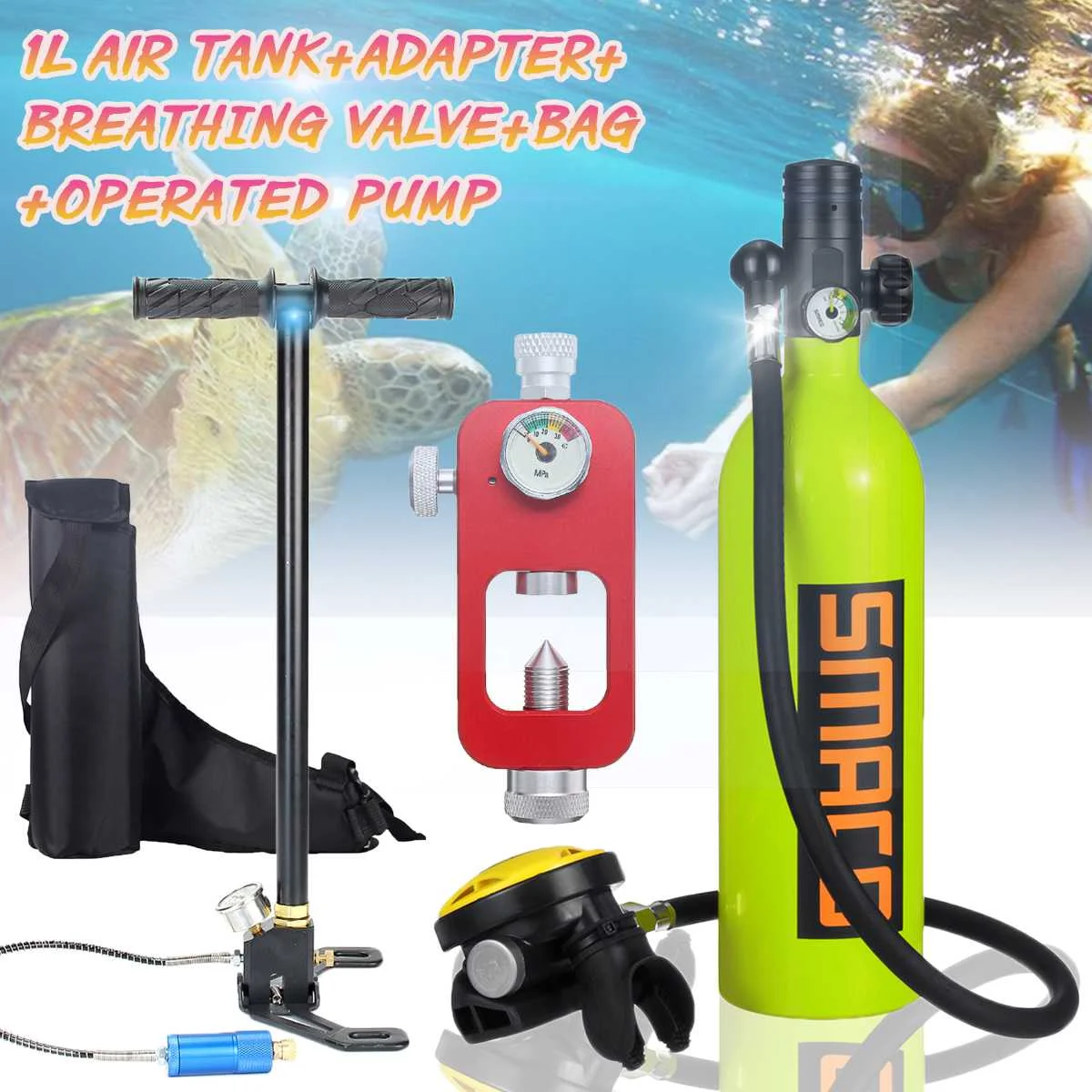Баллон для дайвинга, 1 л, кислородный баллон, адаптер для заправки респиратора + мини-насос, насос высокого давления, аксессуары для дыхания, подводного плавания