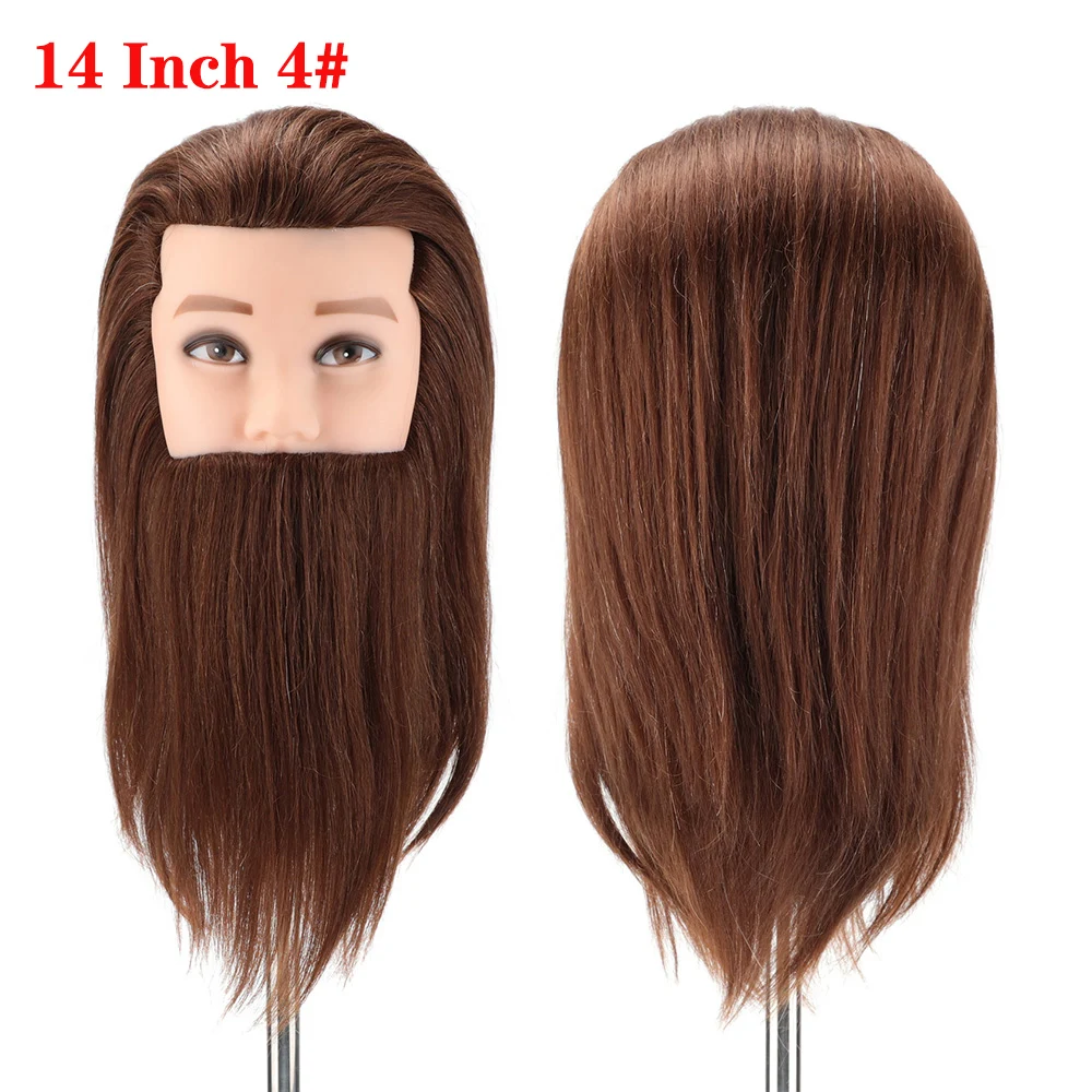 Голова-манекен для парикмахеров, 100% натуральные человеческие волосы с бородой, мужские тренировочные головки для стрижки