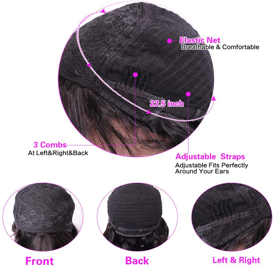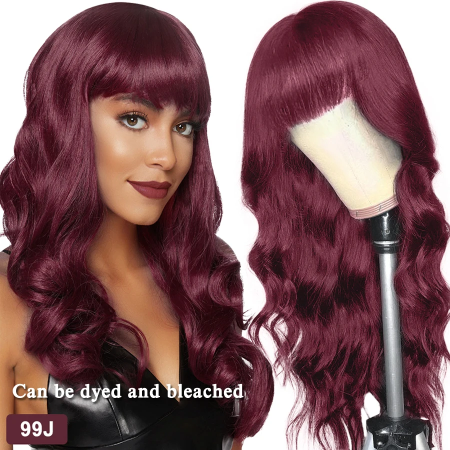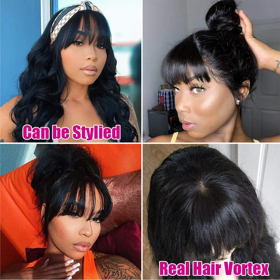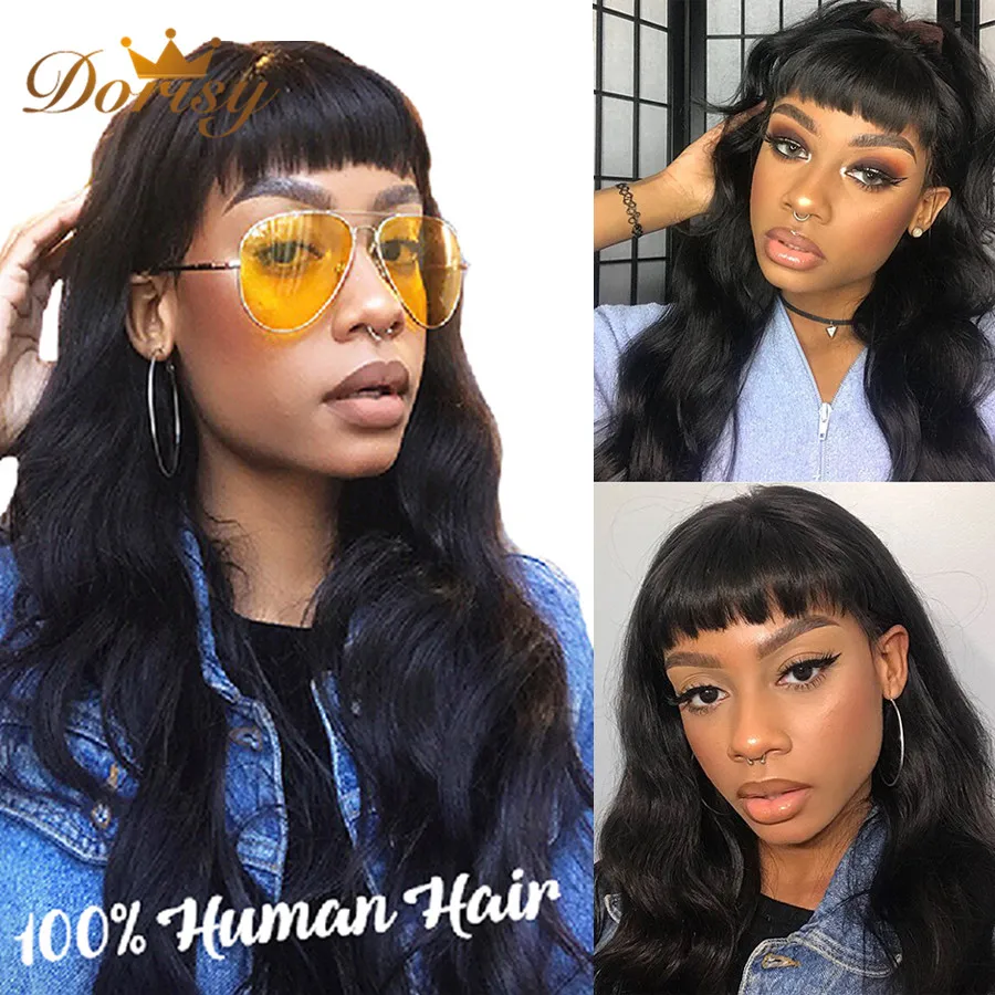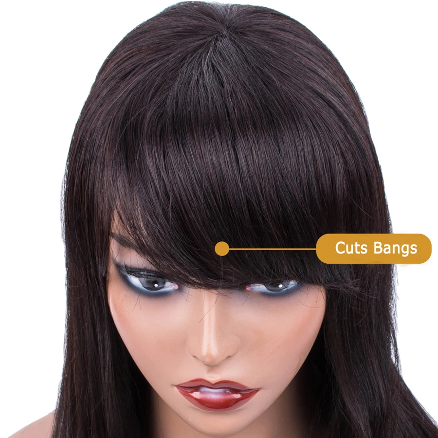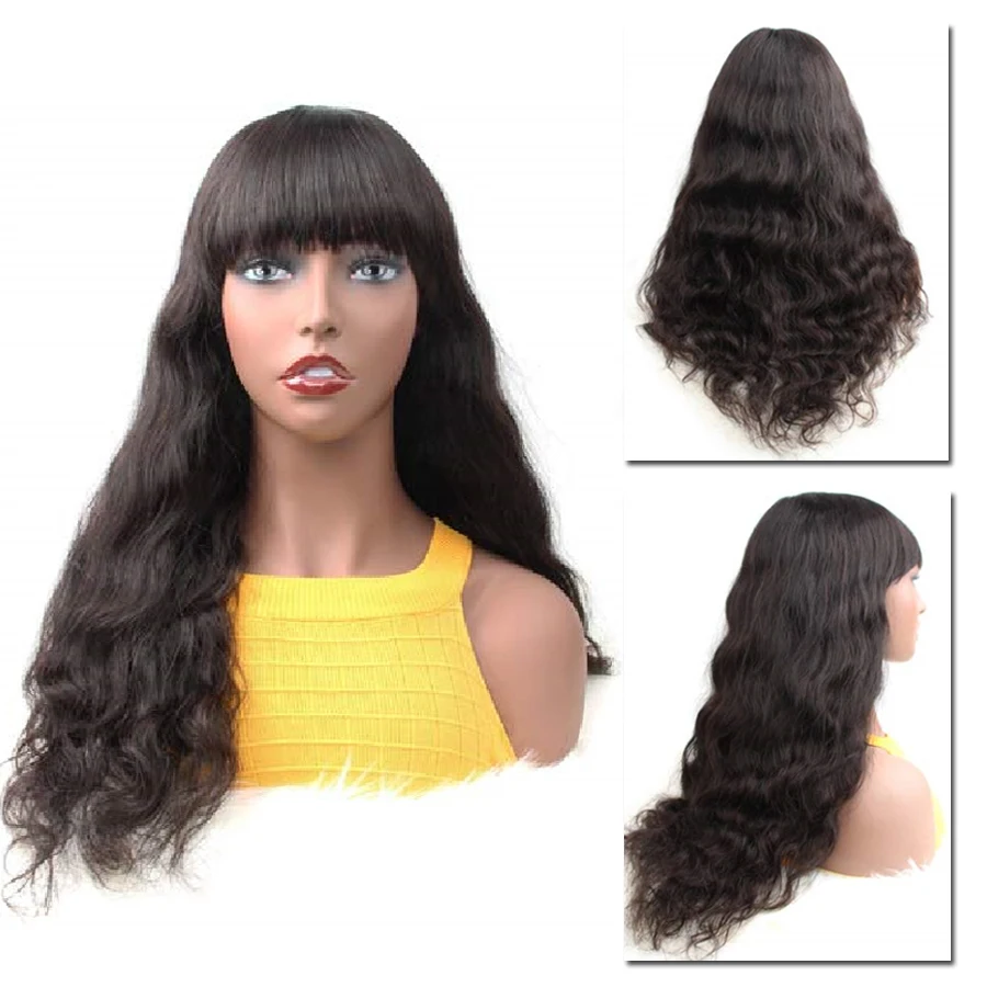 Парики из натуральных бразильских волос с челкой, для чернокожих женщин, без клея