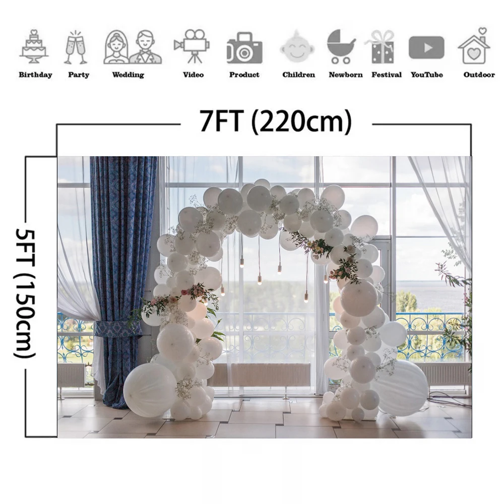 Фон для фотосъемки с изображением Двойного Белого дома с воздушными шарами, беседки, интерьера, дня рождения