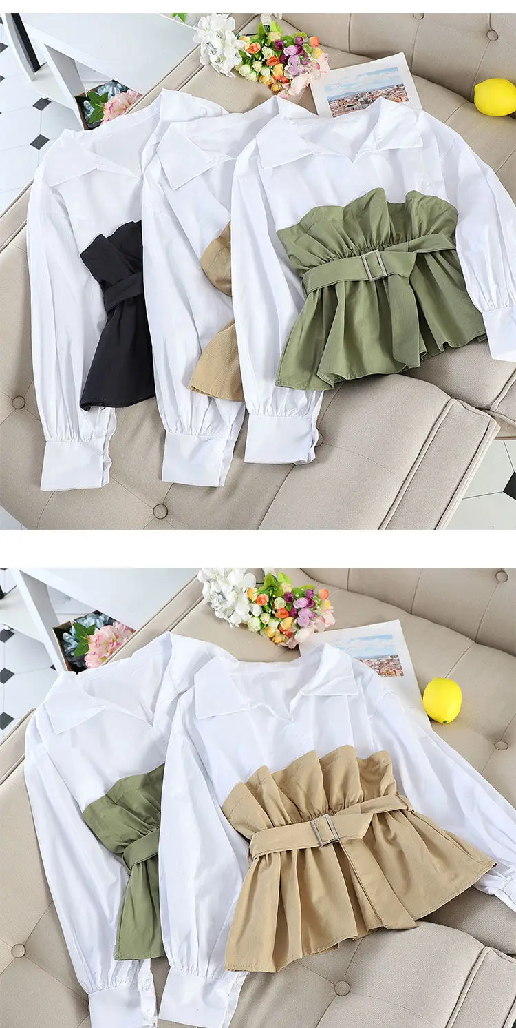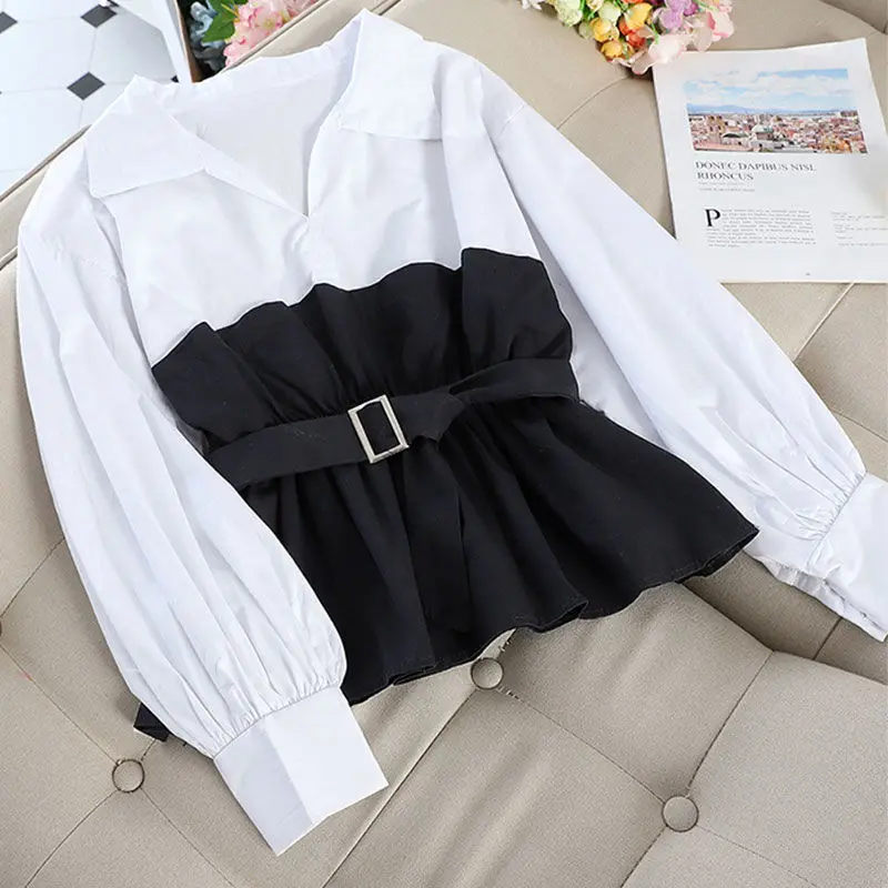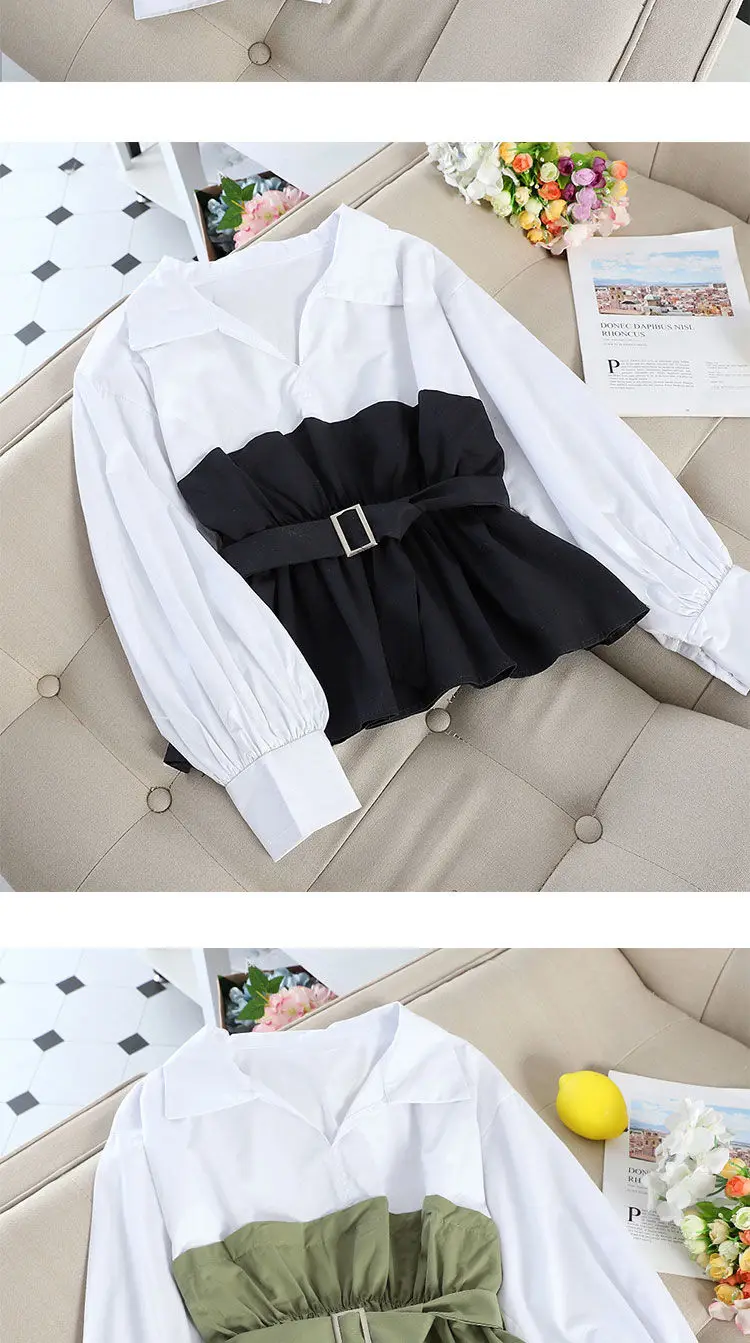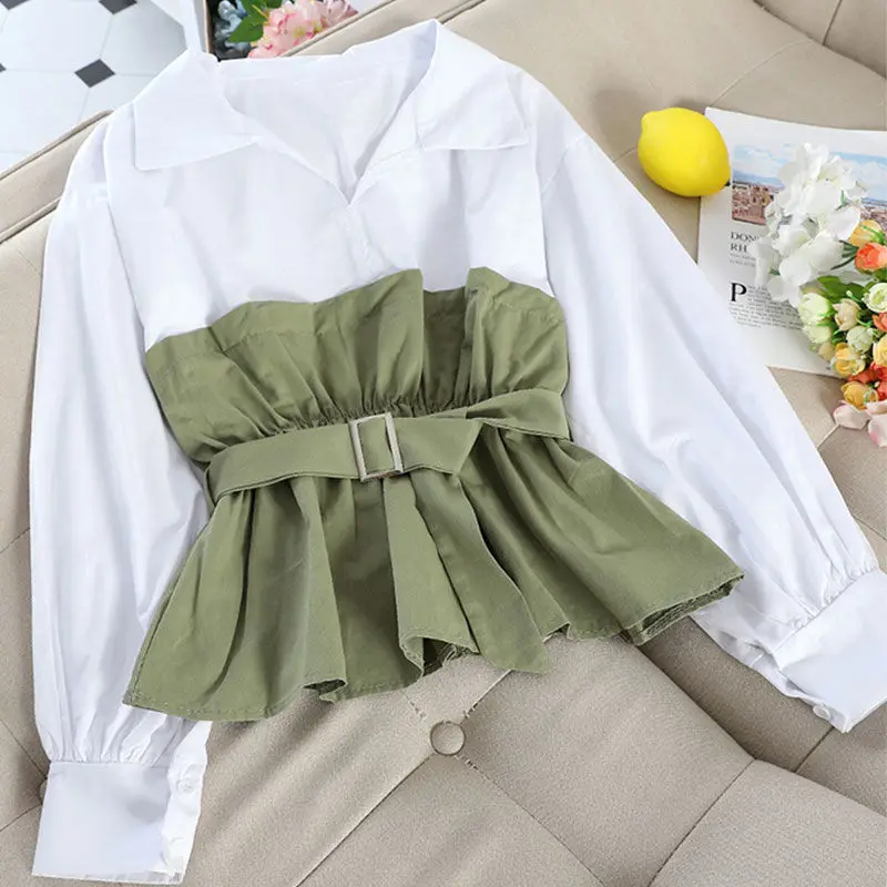 Женская блузка с длинным рукавом и V-образным вырезом, с оборками, 2021