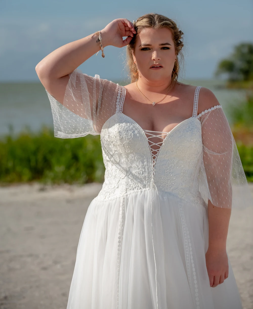 Пляжное свадебное платье в стиле бохо с открытыми плечами и длинным...