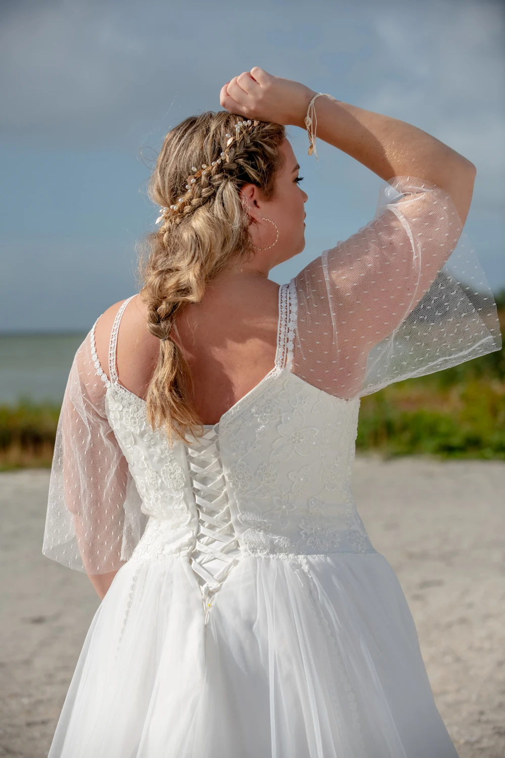 Длинное кружевное платье невесты, из легкого тюля, цвета шампанского