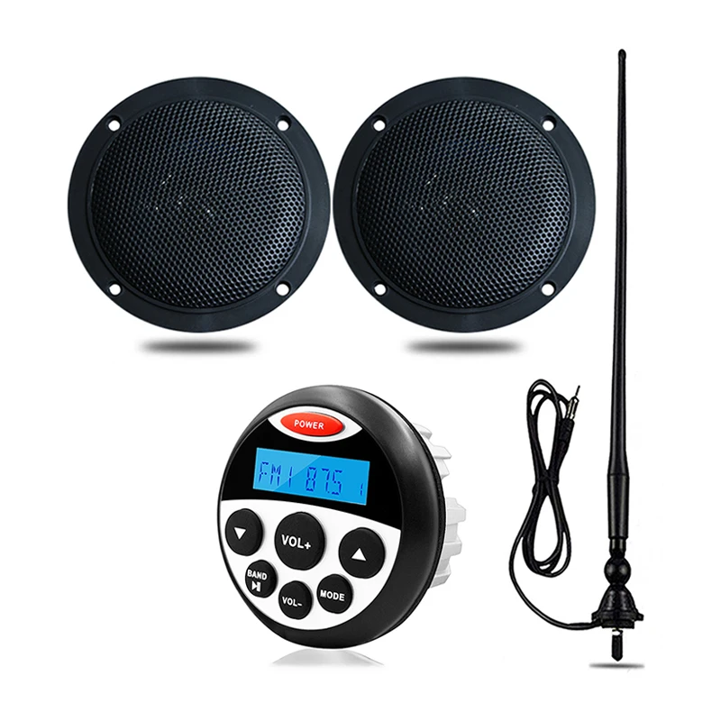 Морской стерео-аудио для лодки, Bluetooth-радио, FM AM, Автомобильный MP3-плеер + 4 "водонепроницаемый динамик + радиоантенна для RV, ATV, UTV, авто, мотоцикла