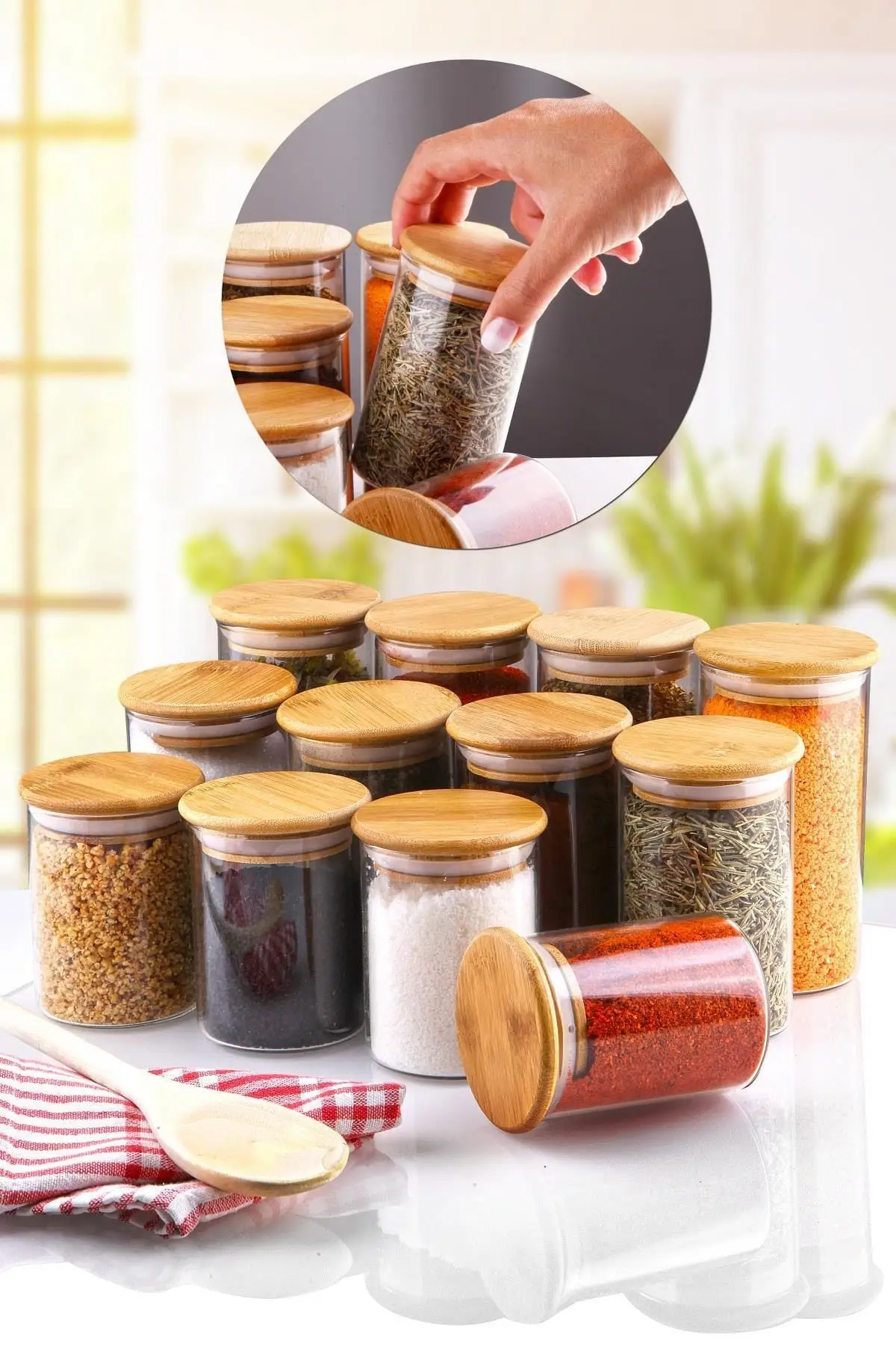 Набор емкостей для специй в количестве 12 шт. из стекла с деревянны...