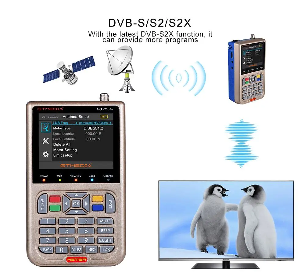 Прибор для поиска ТВ Gtmedia V8 SatFinder Digital 1080P HD DVB-S2 S2X спутниковый декодер