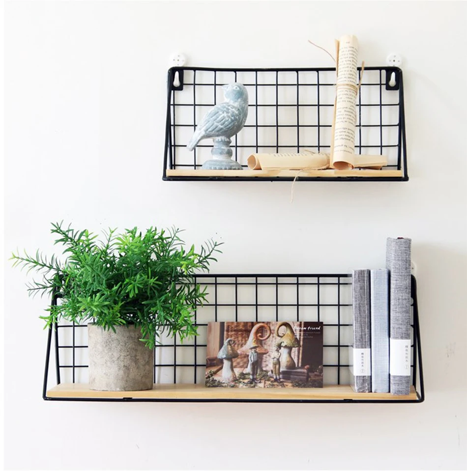 Деревянная и железная настенная полка для домашнего декора, настенный стеллаж для хранения для кухни, спальни, детской комнаты, деревянный держатель