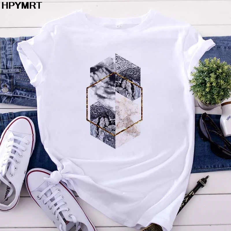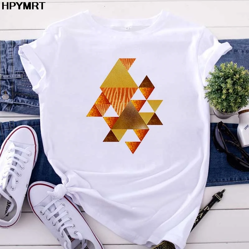Футболка женская с геометрическим принтом, красивый топ с графическим принтом в стиле 90-х, модная Милая рубашка в стиле Харадзюку с коротким рукавом, одежда