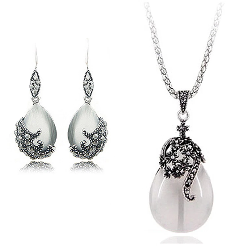 Новый Ретро Серебряные модные опаловые Капля воды цветок Подвески Д...