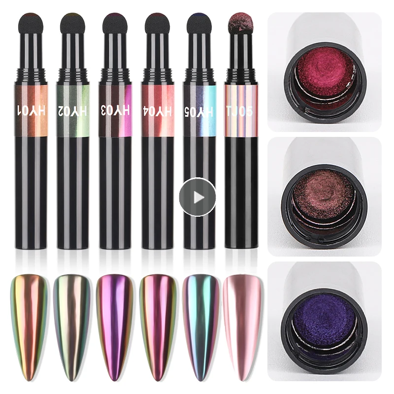NameNail Art Glitter Magic Mirror Pen Nail Powder Air Cushion Pen