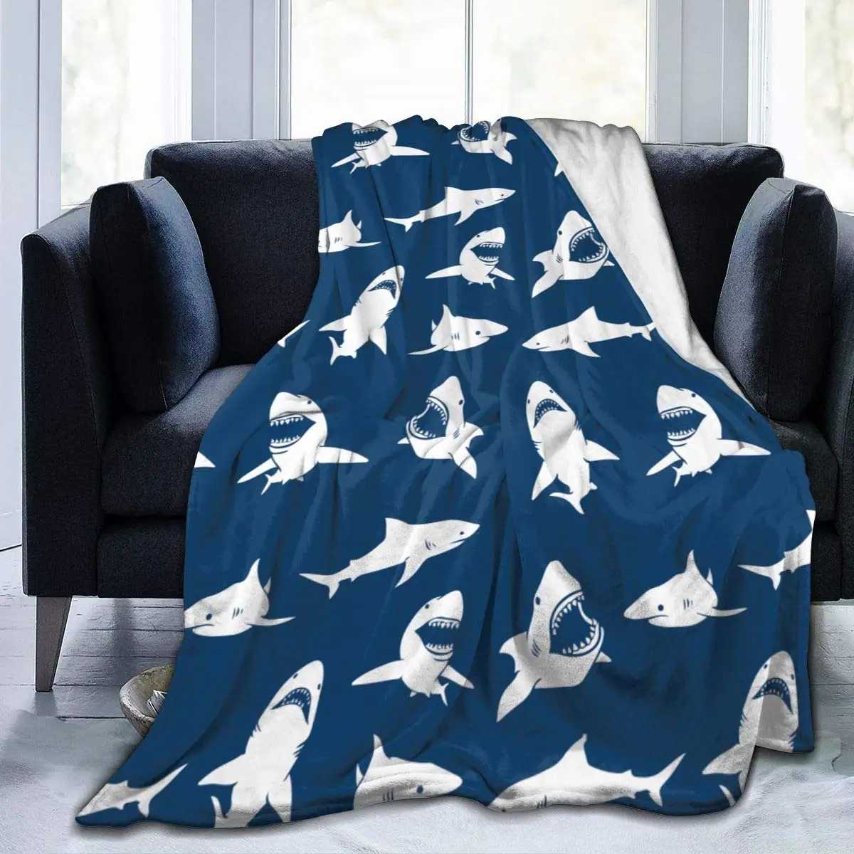 Супер мягкое плюшевое одеяло Shark Fierce Blue, мягкое плюшевое одеяло, удобное фланелевое одеяло, уличное одеяло для дивана или кровати, Размер дивана
