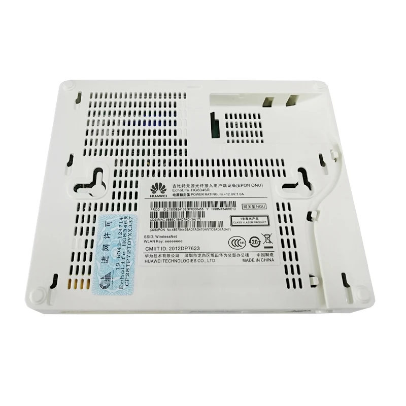 Оригинал-Новый Gpon ONU ONT Huawei HG8346REcho Life HG8346R, оптический сетевой терминал (ONT), является элитным домом в FTTH решении. С помощью технологии EPON ультра-широкополосный доступ предоставляется для пользователей дома и SOHO. HG8346R предоставляет два порта POTS, четыре порта FE. HG8346R имеет Высокопроизводительные возможности пересылки, чтобы обеспечить превосходный опыт работы с VoIP, Интернет и HD видео сервисами.HG8346R Введение функции:4 порта FE2 голосовых порта1 usb-портHG8346R Технические характеристики:Размер (ширина * глубина * высота, единица измерения: мм):176*138,5*28Вес (содержит адаптер питания): менее 500 гВходная мощность: 110-240 В переменного токаМощность: 14 ВтТемпература рабочей среды: 0 ~ 40Влажность рабочей среды: 5 ~ 95% (без конденсации)
