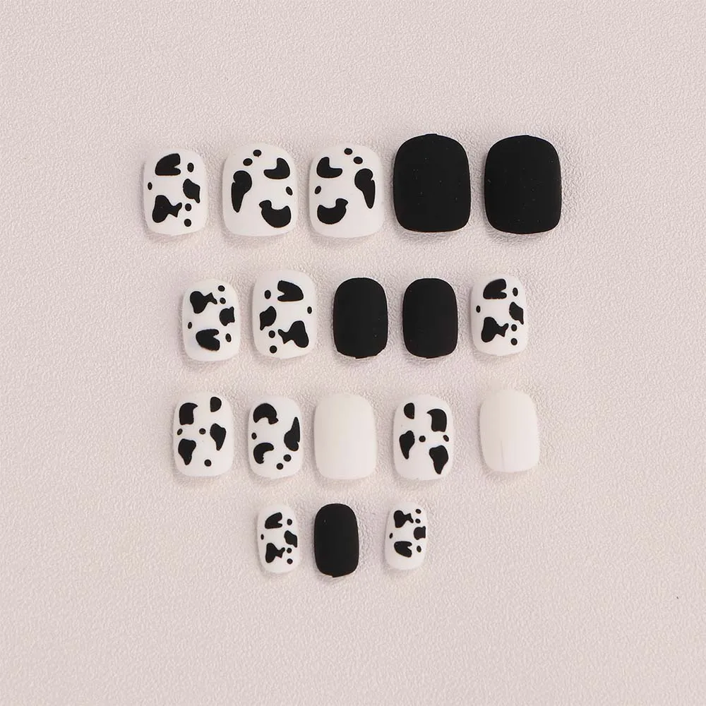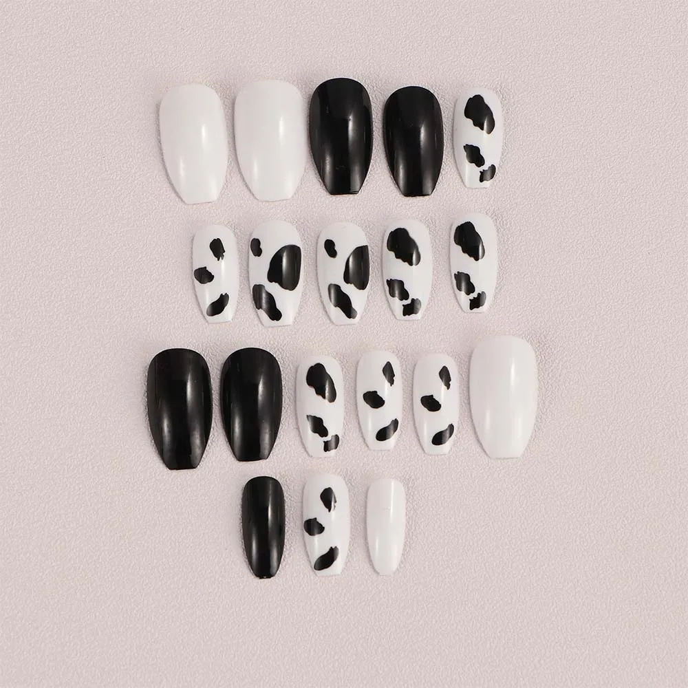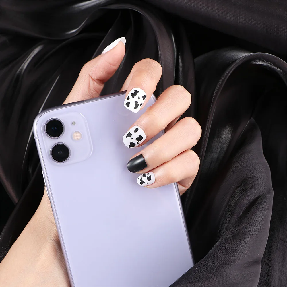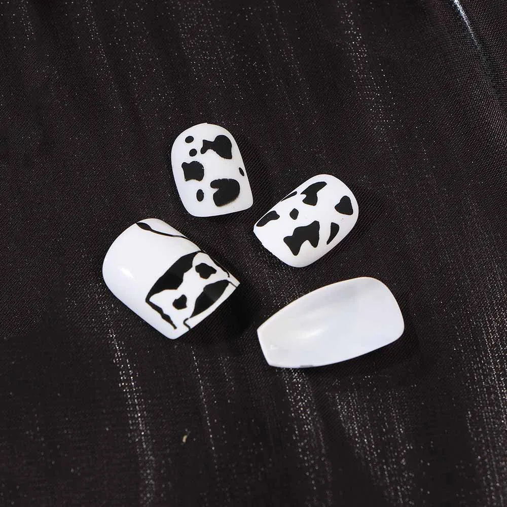 24 шт. черно-белый матовый коровья печать накладные ногти гроб накладные ногти УФ Дизайн гель Популярные черные пятна