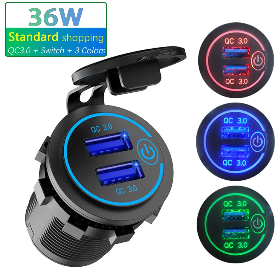 Сенсорный переключатель 36 Вт QC3.0 USB зарядное устройство гнездо водонепроницаемый универсальный мотоцикл грузовик автомобиль прикуриватель разъем для телефона планшет DVR