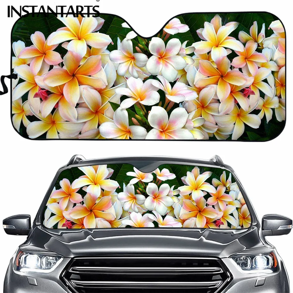 Универсальный солнцезащитный козырек INSTANTARTS, полинезийская Плюмерия, цветочный рисунок, защита от солнца на лобовое стекло автомобиля