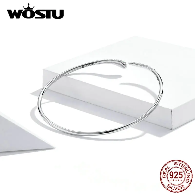 WOSTU 100% Серебро 925 пробы Регулируемый простой браслет 17 -19 см...