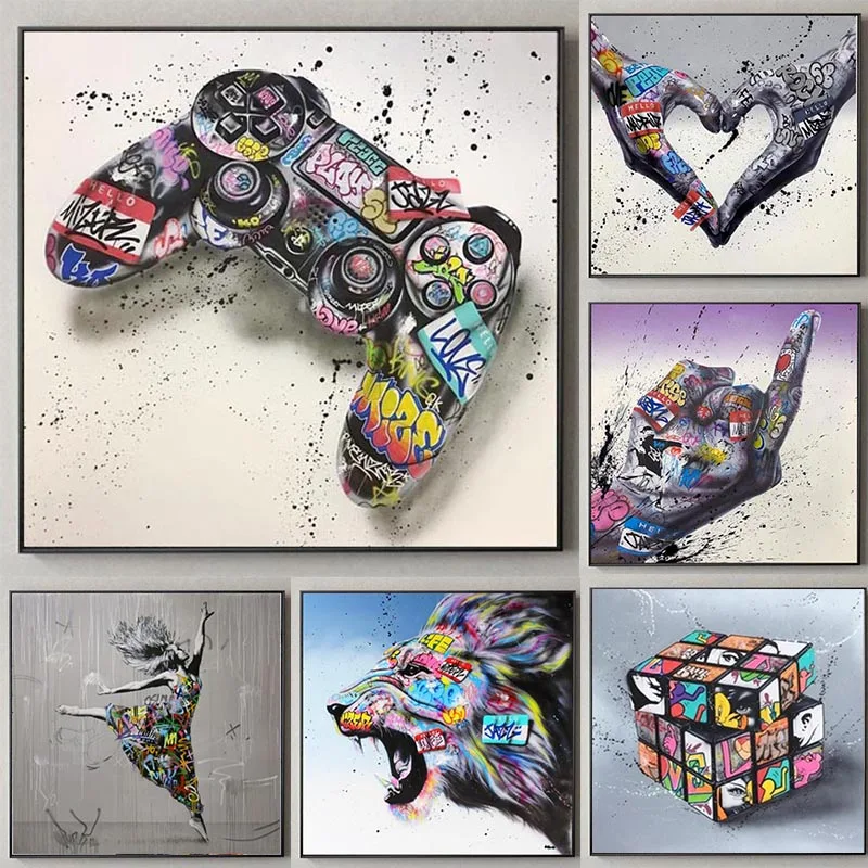 Абстрактная Улица граффити художественный геймпад Картина на холсте Современная игра ручка печать и плакат Настенная картина для декора гостиной