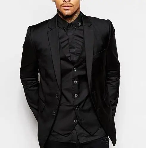Мужской костюм с лацканами, черный приталенный костюм из 3 предмето...