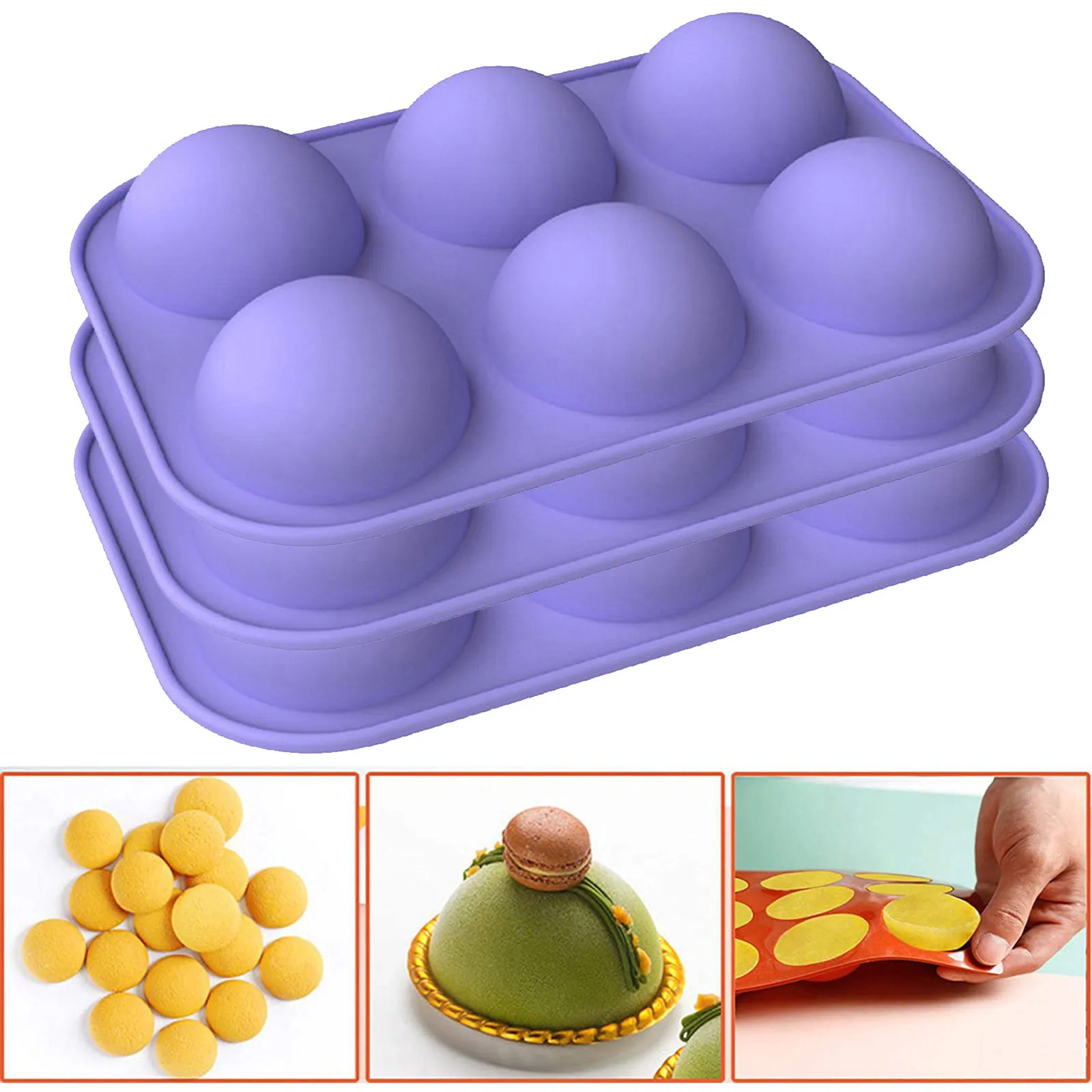 3 шт., пурпурная полушариковая Сфера, силиконовая форма для выпечки тортов, маффинов, шоколада, печенья, форма для выпечки, декоративная форма, формы для рукоделия