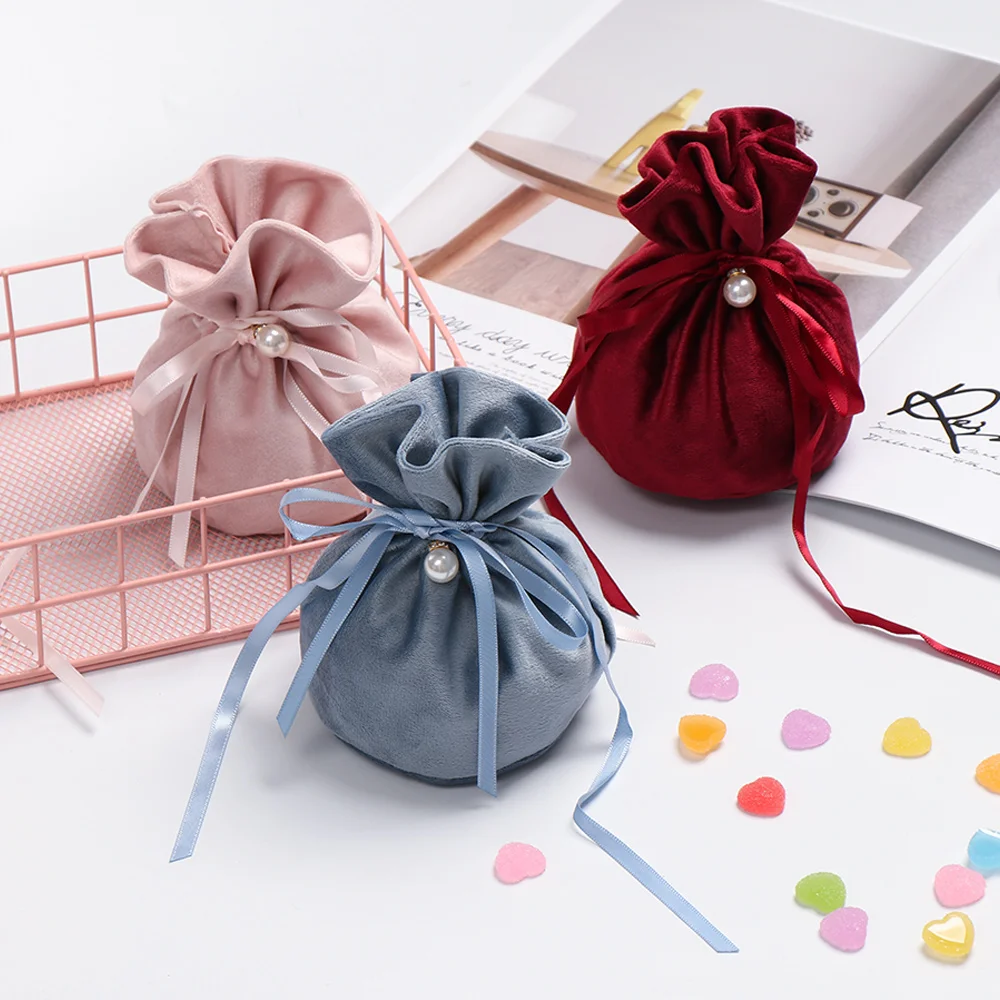 Многофункциональная Подарочная сумка для ювелирных изделий, сумка для конфет с кулиской, бархатные сумки с кулиской, Аксессуары для детского душа, свадебные сувениры