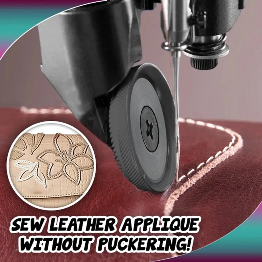 Прикрепить Прижимная лапка для кожаного ролика к машинке; Регулировка положения иглы до Дальний левый, чтобы сидеть рядом с колесом стопы.